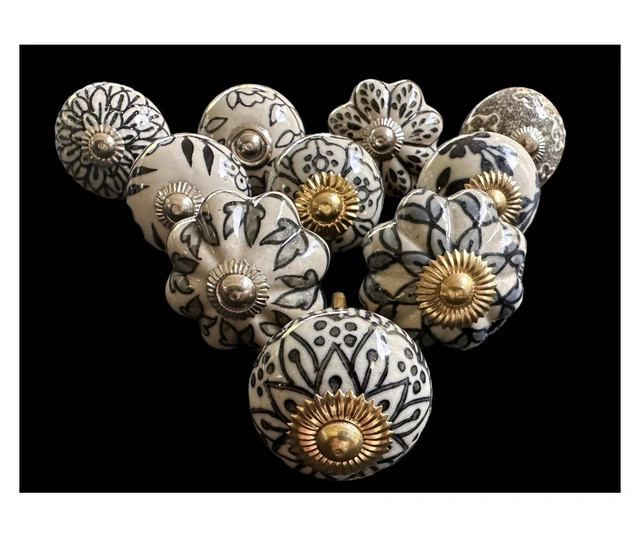 10 db-os kézzel festett vintage stílusú porcelán bútorgomb szett