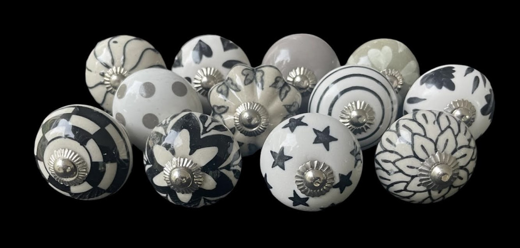 12 db-os vintage stíkusú porcelán bútorgomb szett